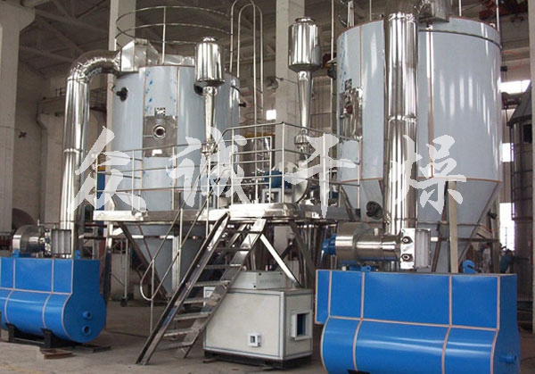 產品介紹  噴霧干燥是液體工藝成形和干燥工業中廣泛應用的工藝。適用于從溶液、乳液、懸浮液和糊狀液體原料中生成粉狀、顆粒狀固體產品。因此,當成品的顆粒大小分布、殘留水份含量、堆積密度和顆粒形狀必須符合精確的標準時,噴霧干燥是一道十分理想的工藝。工作原理   空氣經過濾和加熱,進入干燥器頂部空氣分配器,熱空氣呈螺旋狀均勻地進入干燥室。料液經塔體頂部的高速離心霧化器,(旋轉)噴霧成極細微的霧狀液珠,與熱空氣并流接觸在極短的時間內可干燥為成品。成品連續地由干燥塔底部和旋風分離器中輸出,廢氣由風機排空…